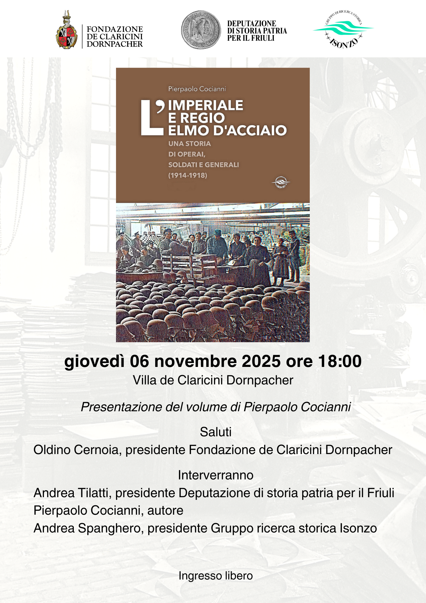 Nell’ambito della rassegna “Giovedì in Villa”, in collaborazione con la Deputazione di storia patria per il Friuli, siamo lieti di ospitare la presentazione del volume di Pierpaolo Cocianni, illustrato dall’autore stesso